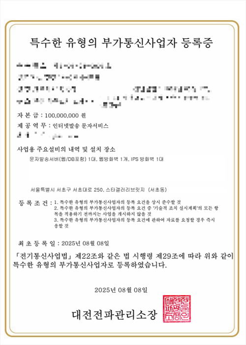 특수한 유형의 부가통신사업자 등록증(이하 ‘특부가’)